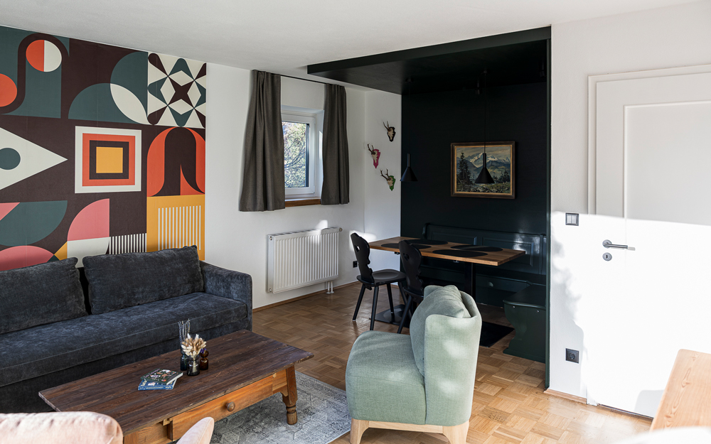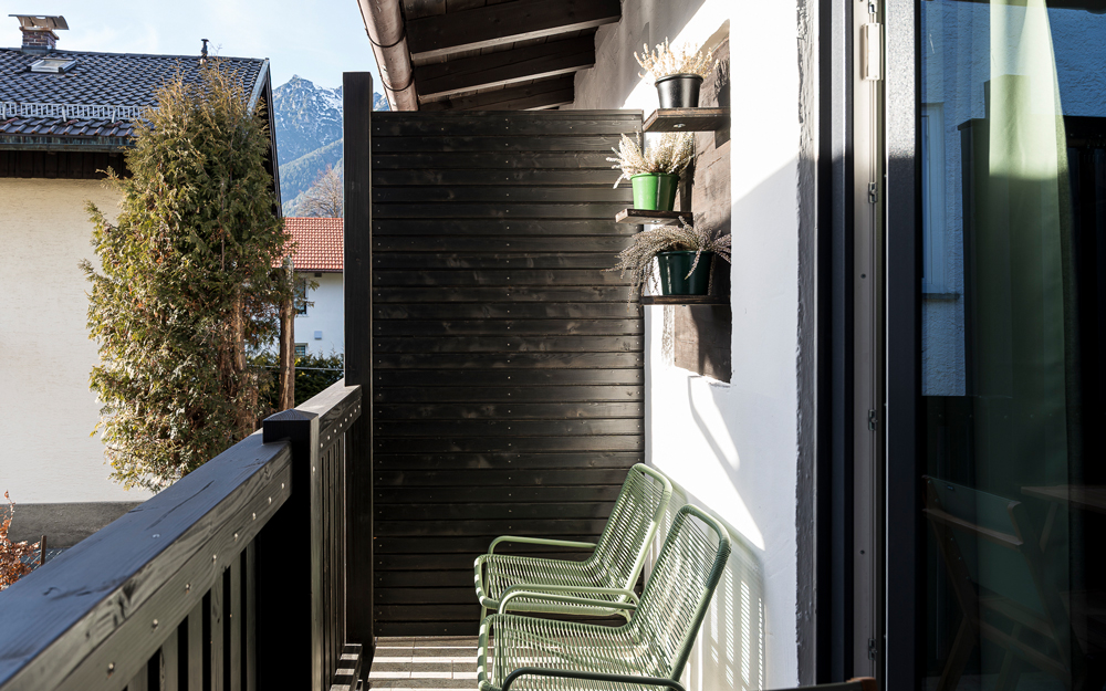 Perfekten Bergblick auf Alp- und Zugspitze von dem großen Balkon genießen. Für schöne Träume sorgt das gemütliche separate Schlafzimmer. Im geräumigen Wohnzimmer finden zwei weitere von Euch Platz auf dem großzügigen Sits Schlafsofa. Die Hofsuite ist mit einer vollwertigen Küche, gemütlicher Sitzecke und einem Bad mit Dusche ausgestattet und liegt im Nebengebäude im Hof.